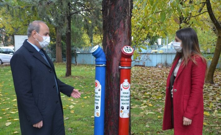 Gaziantep’in Oğuzeli ilçesinde Kaymakamlık ve Belediye iş birliği ile sokak hayvanları için belirlenen uygun yerlere atıl su borularından yapılan yemlik ve suluk yerleştirildi.