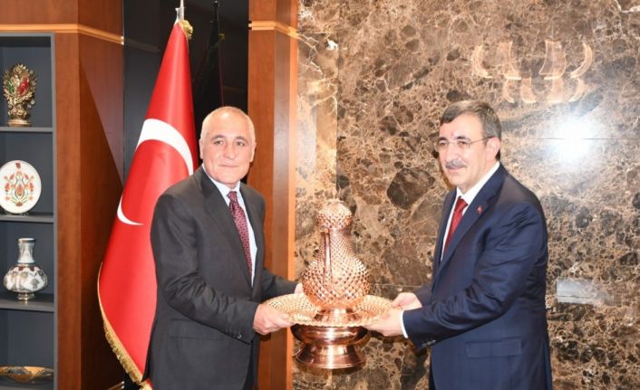 Cumhurbaşkanı Yardımcısı Cevdet Yılmaz, Gaziantep programı kapsamında Organize Sanayi Bölge Müdürlüğünde iş dünyasının temsilcileri ile bir araya geldi.
