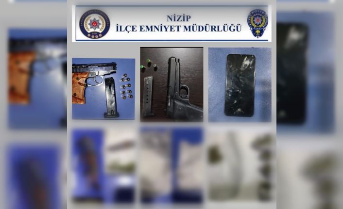 Ediinlen bilgilere göre, Nizip İlçe Emniyet Müdürlüğü ekipleri tarafından yapılan uygulama esnasında durumundan şüphelendikleri 3 kişi durduruldu. Şahısların üzerleirnd eyapılan aramalarda, uyuşturucu madde, 1 adet ruhsatsız tabanca, 1 adet kurusıkı tabanca ve 1 adet çalıntı cep telefonu ele geçirildi. Çeşitli suçlardan yakalama emri ile aranan 3 şahıs gözaltına alınaraka emniyete götürüldü.
