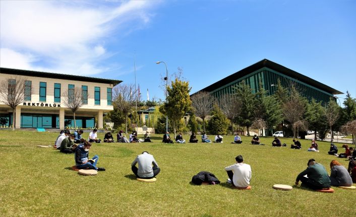 Rektör Dereli gençlerle birlikte açık havada kitap okudu