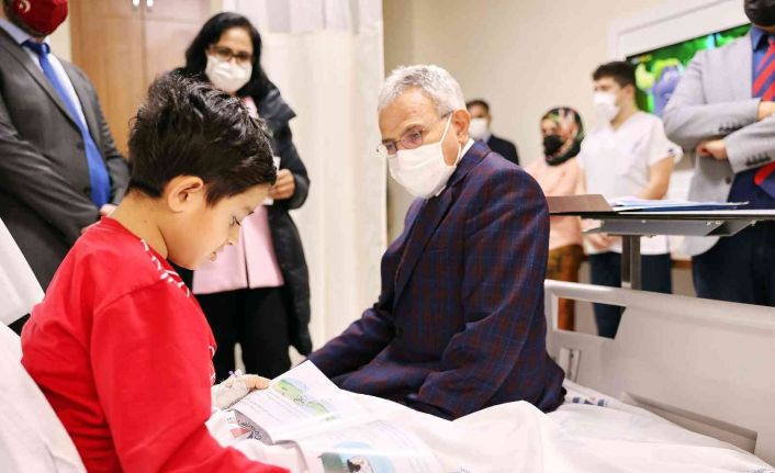 Rektör Özaydın hasta çocuklara kitap dağıtarak moral verdi
