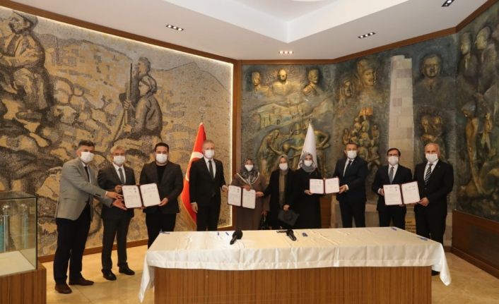 Gaziantep’in Şahinbey ilçesinde yapılacak olan cami ve diyanet anaokulu protokolü Gaziantep Valisi Davut Gül, Şahinbey Belediye Başkanı Mehmet Tahmazoğlu ve hayırsever Orhan Tüzel ve ailesi tarafından imzalandı.