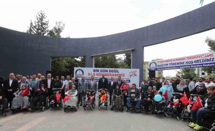 Gaziantep’in Şahinbey ilçesinde 91 engelliye akülü ve manuel tekerlekli sandalye dağıtıldı. Şahinbey’de son 14 yılda dağıtılan tekerlekli sandalye sayısı 3 bin 375’e ulaştı.