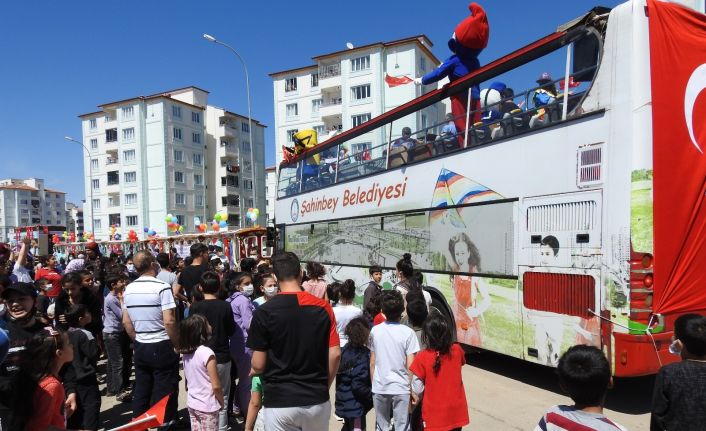 Şahinbey Belediyesi düzenlediği araç konvoyuyla mahalle mahalle gezerek 23 Nisan’da evde kalan çocuklara müzikler eşliğinde etkinlik düzenledi.