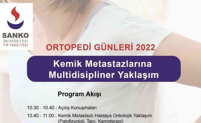 SANKO Üniversitesi Tıp Fakültesi Ortopedi ve Travmatoloji Ana Bilim Dalı tarafından 4 Haziran 2022 tarihinde, Ortopedi Günleri çerçevesinde“Kemik Metastazlarına Multidisipliner Yaklaşım” konulu bilimsel bir program düzenlenecek.