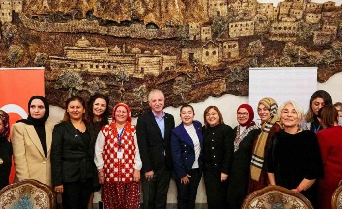 Programın sonunda seçilmiş kadınlar Büyükşehir Belediye Başkanı Fatma Şahin ile anı fotoğrafı çektirdi.