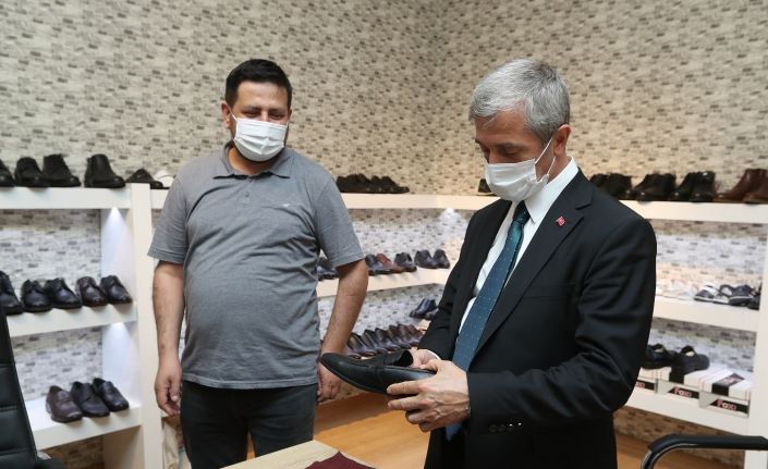 Şahinbey Belediye Başkanı Mehmet Tahmazoğlu, Şahinbey ilçesinde faaliyet gösteren ayakkabı tamircilerine ve satıcılarına destek oluyor.
