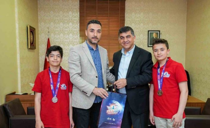 Teknofest’te Bilim Şehitkamil çatısı altında hazırlanan ve ‘Ulaşım Teknolojileri’ kategorisinde yarışarak Türkiye ikincisi olan Ahmet Barut ve Musab Demiray, verdiği destek dolayısıyla Şehitkamil Belediye Başkanı Rıdvan Fadıloğlu’na teşekkür ziyaretinde bulundu. 24 bin 640 takımı geride bırakarak Türkiye ikincisi olmayı başaran Perseverence Takımı’nı tebrik ederek ödüllendiren Başkan Fadıloğlu, “Bilim Şehitkamil ailesi olarak her sene Teknofest’te çok değişik projelerle katılıyoruz. Geçen sene de yine finale kalan çocuklarımız bu sene derece yaptılar. Tebrik ediyorum. Gerçekten emeğin karşılığı alındı” dedi.