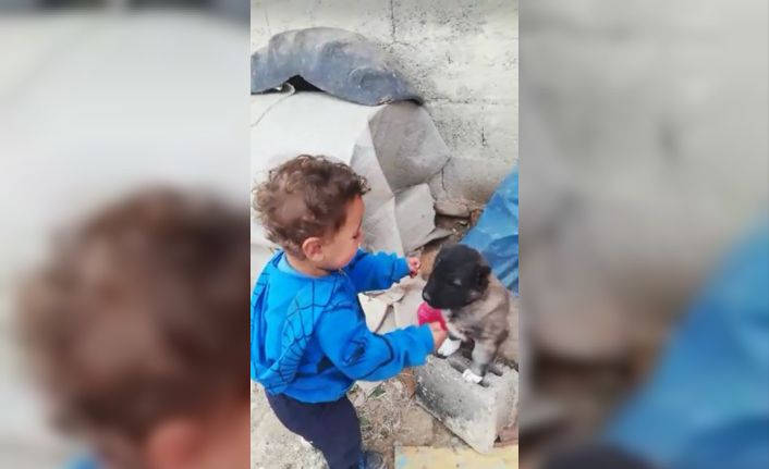 Mardin’in Mazıdağı ilçesinde 1 buçuk yaşındaki çocuk ile yavru köpeğin dostluğu görenlerin yüreklerini ısıttı.