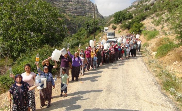 Ayten Çulha ise, “Mağdur olan kadınlardır. Çamaşır makinemizi, bulaşık makinemizi çalıştıramıyoruz. 3 kilometre öteden suya geliyoruz. Suyumuz yetersiz biz suyumuzu geri istiyoruz. 1 litre su için kuyruğa giriyoruz suyumuzu geri istiyoruz” diye konuştu.