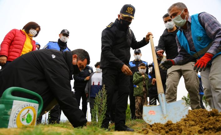 Adana’da 1935 yılından bu yana şehit olan 135 polis memuru şehidinin çocuk ve eşleri 135 fidan dikti.