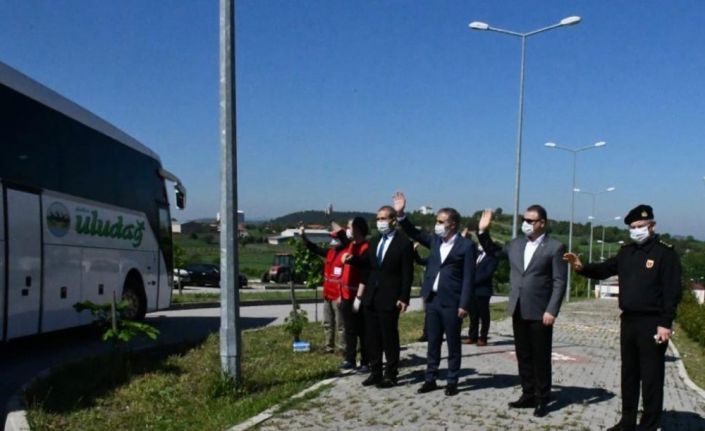 Hasan Basri Çantay Öğrenci Yurdu’nda 14 günlük karantina süreçlerini tamamlayan 164 kişi yapılan sağlık kontrollerinin ardından otobüslerle memleketlerine gönderildi. Kazakistan’dan gelerek Balıkesir’de misafir edilen 164 kişiyi memleketlerine İl Jandarma Komutanı Jandarma Kıdemli Albay Tarık Hekimoğlu, Gençlik Spor İl Müdürü Lokman Arıcıoğlu ve AFAD İl Müdürü Bayram Şahin yolcu etti. Gençlik ve Spor İl Müdürü Lokman Arıcıoğlu Kazakistan’dan gelerek Balıkesir’de 14 günlük karantinaya alınan vatandaşların sağlık durumlarının iyi olduğunu belirterek, onları ağırlamaktan büyük mutluluk duyduklarını ifade etti. Arıcıoğlu, Balıkesir’de kalan vatandaşların büyük mutlulukla ayrıldıklarını da ifade ederek, 14 gün boyunca onlara en iyi hizmeti sunduklarının altını çizdi.