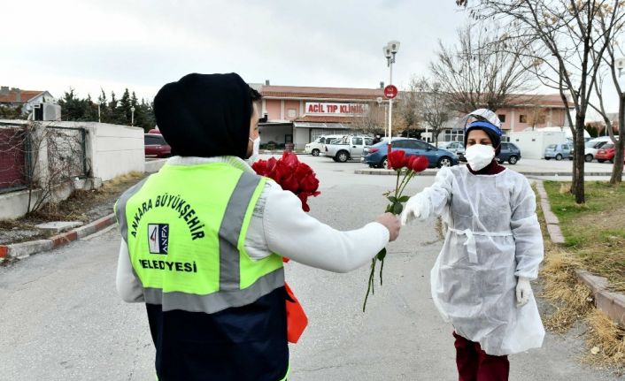 Ankara Büyükşehir Belediyesi ekipleri, Başkentli çiçekçilerden satın alınan kırmızı gülleri 14 Şubat’ta hastanelerde görevinin başında olan sağlık çalışanlarına ve hasta yakınlarına dağıttı.