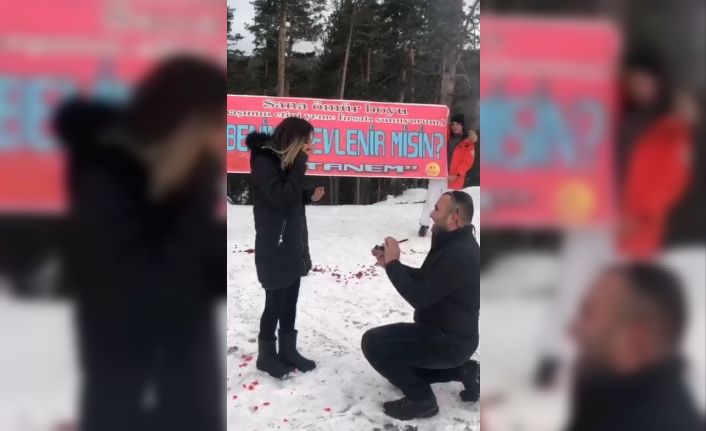 Kars’ın Sarıkamış ilçesi Cıbıltepe Kayak Merkezi’nde tatil yapan ve isminin açıklanmasını istemeyen bir genç, arkadaşlarıyla birlikte kız arkadaşına sürpriz hazırladı. Arkadaşlarıyla birlikte hazırladıkları üzerinde “Benimle evlenir misin bir tanem” yazılı pankartı açan genç, kız arkadaşına Sevgililer Günü’nde karlar üzerinde diz çökerek evlenme teklifi yaptı. O anlar vatandaşlar tarafından cep telefonuyla kaydedildi. Meşalelerin yakıldığı evlilik teklifinde kız arkadaşından ‘evet’ cevabını alan genç, kız arkadaşına sarıldı. Evlilik teklifinin ardından gençler kayak merkezinden ayrıldı.14 Şubat’ta karlar üzerinde meşaleli evlilik teklifi