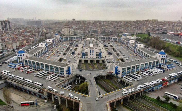Her gün binlerce insanın seyahat ettiği 15 Temmuz Demokrasi Otogarı’nda yaşanan yeni tip korona virüs sessizliği havadan görüntülendi.