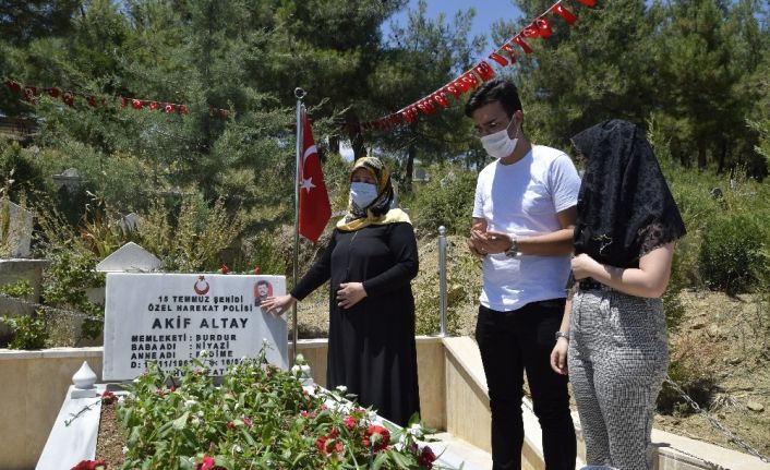 FETÖ/PDY tarafından 15 Temmuz 2016 tarihinde gerçekleştirilmek istenen hain darbe girişimi gecesi şehit edilen polis memuru Akif Altay, Burdur’daki mezarı başında anıldı. Vatan uğruna, bayrak aşkına can verdiklerini ifade eden şehidin eşi Gülsüm Altay, “15 Temmuz’dan geriye keder kaldı. Eşim vatan aşkıyla yanıp tutuşuyordu, hep şehitliği istiyordu. Biz hiçbir zaman onun bu duasına ‘amin’ diyemedik ama bir gün yine onu beklerken şehit olduğu haberi geldi” dedi.