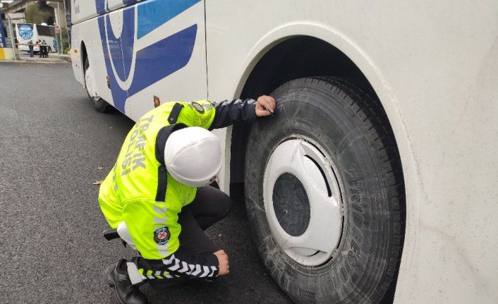 15 Temmuz Şehitler Otogarı’nda şehirlerarası otobüslerde kış lastiği uygulaması yapıldı. Lastiği uyumlu olmayan otobüslere 766 lira para cezası keserek, seferden men edildi. Polis ekipleri, otogar çıkışında gün boyu denetim yapacak.