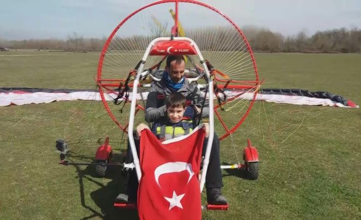 DÜZCE(İHA) – 23 Nisan Ulusal Egemenlik ve Çocuk Bayramı nedeni ile Düzce’de faaliyetlerini sürdüren Hava Sporları kulübü bu sefer çocuklar için havalandı. Paramotorla bulutların arasına çıkarılan çocuklar, bayram coşkusunu uçarak yaşadılar.