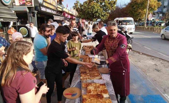 Bursa’da öğrenciler için 150 metre börek açan börek Hasan Acar, 250 kiloluk 5 tepsi böreği dakikalar içinde öğrencilere ücretsiz olarak dağıttı. Bursa’da öğrencilerin aç kalmayacağını belirten Hasan Usta, ‘param yok’ diye kimsenin kapılarından dönmemesini istedi.