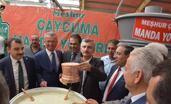 Zonguldak’ın Çaycuma ilçesinde 12-14 Eylül tarihlerinde açılan 4. Gıda Tarım ve Hayvancılık Fuarı’nda özel bakraca yapılan 250 kiloluk manda yoğurdu büyük ilgi gördü.