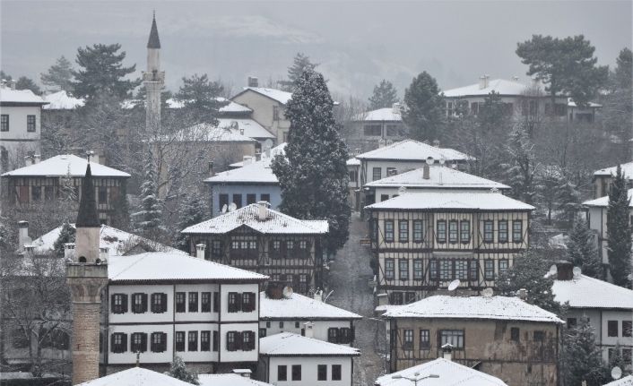 UNESCO Dünya Miras Listesi’nde yer alan ve 3 bin yıllık geçmişe sahip olan Karabük’ün Safranbolu ilçesindeki tarihi konaklar yağan karla beyaza büründü.