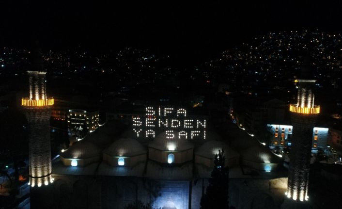 Bursa Ulucami’nin 70 metre yüksekliğindeki minarelerine çıkan mahya ustaları 30 metre uzunluğundaki mahyaları büyük bir ustalıkla astı. Ya şafi mesajı ise drone ile havadan ve Tophane sırtlarından görüntülendi.