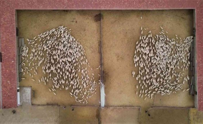 Ağıl kapılarının açılmasıyla birlikte annelerine koşan kuzular için günün en lezzetli saati başladı. Hepsi aynı gibi görünse de koku ve sesleriyle birbirlerini bulan kuzular ile annelerinin renkli anları havadan görüntülendi.