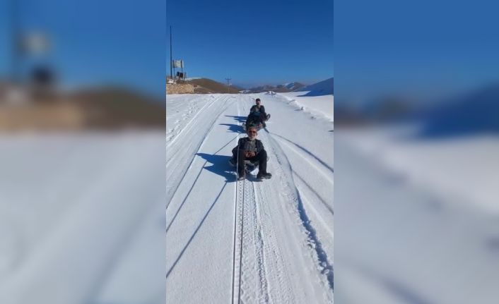 Kürtün ilçesine bağlı Söğüteli köyü sınırları içerisinde yer alan ve denizden yüksekliği 2 bin 350 metre olan Kazıkbeli Yaylası’ında vatandaşlar karın tadını kızaklarla doyasıya çıkarıyor. Kazıkbeli yaylasında yaşayan Ahmet Keskin isimli vatandaş, aracının arkasına halatla bağladığı kızaklarla genç, yaşlı, çocuk demeden isteyen herkesi bu eğlenceye ortak ediyor.