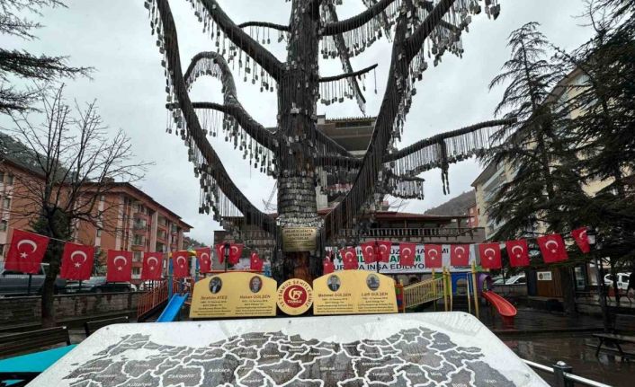 Konuşmaların ardından aralarında deprem bölgesindeki Kızılcahamamlı şehit Uzman Çavuş Mustafa Gökmen’in de bulunduğu künyeler protokol tarafından ağaca çakılırken, şehit Uzman Çavuş Mustafa Gökmen’in künyesini eşi Aliye Gökmen ailesiyle birlikte astı.