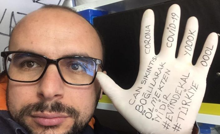 Öte yandan Tokatlı esnaf Mustafa Kahraman’ın eldivenine yazdığı "Can sıkıntısı boğularak ölmekten iyidir. Evinde kal, Türkiye" çağrısı dikkat çekti.