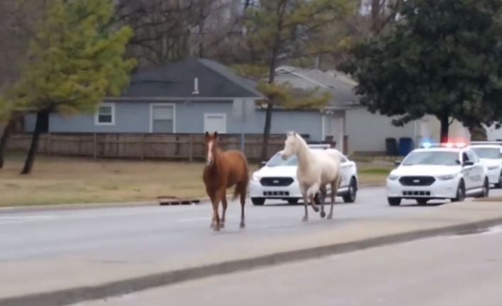 ABD’nin Oklahoma eyaletindeki Tulsa kentinde sahibinden kaçan iki at otoyola girerek trafiğin bir süre tıkanmasına yol açtı. Polis araçları atları yakalamak için peşine düştü. Uzun süren takip sonrası kaçak atlar, Gathering Place’deki otoparkta yakalandı. Atlar daha sonra polisler tarafından sahiplerine teslim edildi.