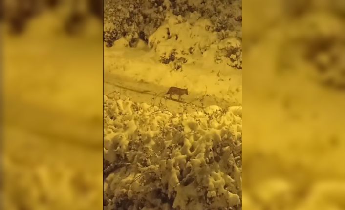 Bilecik’te aç kalan çakallar kent merkezine inerken, bu anlar bir vatandaşın cep telefonu kamerasına yansıdı.