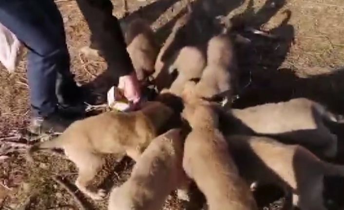 Adıyaman’ın Sincik ilçesinde bir vatandaş, soğuk havalar ve sokağa çıkma kısıtlamaları nedeniyle aç kalan yavru köpekleri besledi. Aç kalan yavru köpeklerin karınlarını doyurmak için birbiriyle yarışması ise dikkat çekti.