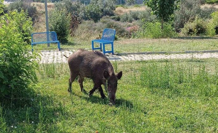 Aç kalan yaban domuzları, İzmir Bornova’da parklara girerek yiyecek aradı.