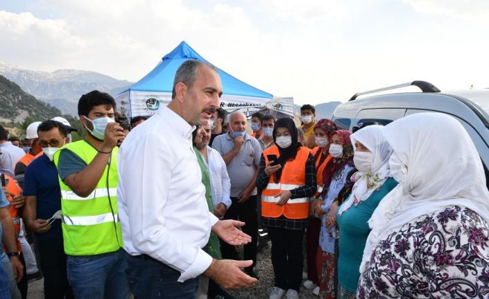 Adalet Bakanı Abdulhamit Gül, Muğla’nın Seydikemer ilçesinde orman yangınlarından etkilenen mahallelerde vatandaşlarla sohbetinde, “Bu orman yangınları hepimizin yüreğini yaktı. Hep beraber bu sıkıntıların üstesinden geleceğiz” dedi.