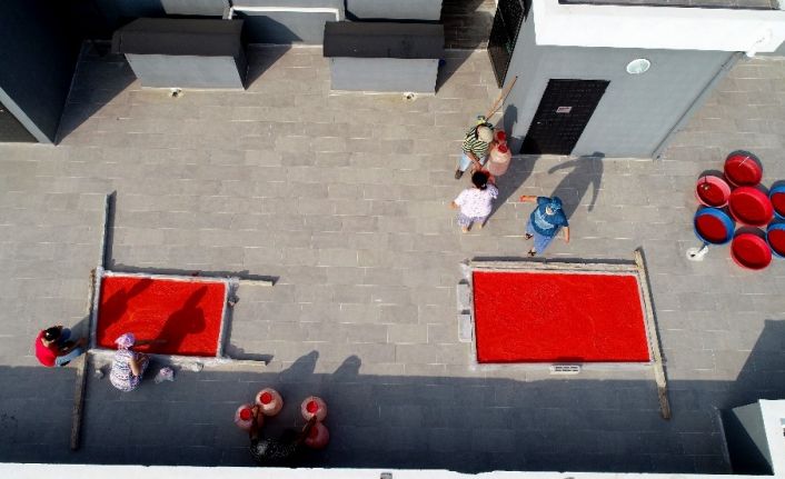 Biberlerini çektiren vatandaşlar son olarak ise suyunu çekmesi için damlara seriyor. Kent genelinde bazı apartmanların ve müstakil evlerim damlarına serilen çekilmiş salçalık biberler, damları kırmızıya boyarken havadan ilgi çekici görüntüler de oluştu.