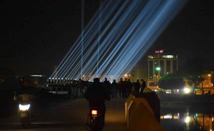 Adana’nın düşman işgalinden kurtuluşun 100. yılı etkinlikleri kapsamında Tarihi Taş Köprü üzerinde yapılan lazer gösterisi yapıldı.