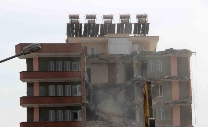 Kahramanmaraş merkezli depremlerde Adıyaman’da ağır hasar gören binaların yıkımı devam ediyor.