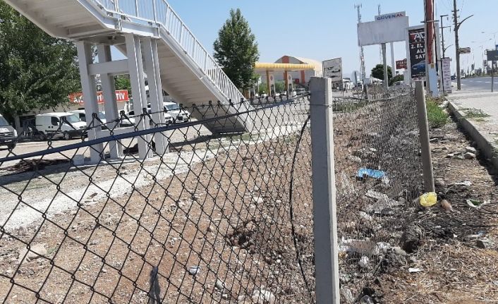Adıyaman’da yeni yapılan bir üst geçidin merdivenlerinden biri tel örgüyle çevrili iş yeri bahçesine, diğeri ise tarlaya çıkıyor.