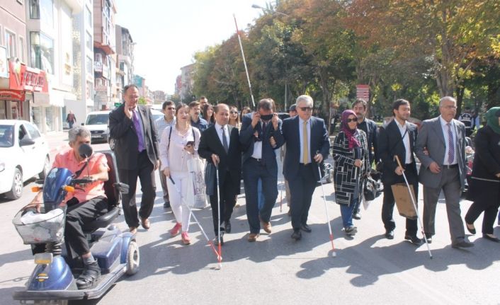 Altınokta Körler Derneği Afyonkarahisar Şubesi üyeleri, toplumda farkındalık oluşturmak amacıyla empati yürüyüşü etkinliği düzenledi. Etkinliğe, İl Müftüsü Şükrü Kabukçu, Aile, Çalışma ve Sosyal Hizmetler Müdür Vekili Yasin Evcin, 112 İl Ambulans Servisi Başhekimi Dr. Gülsüm Doğan, STK Temsilcileri ve vatandaşlar katıldı. İmaret Camii önünde toplan protokol üyeleri ve vatandaşlar gözlerini kapatarak, Zafer Meydanı’na kadar yürüdü. Altı Nokta Körler Derneği Başkanı Hakan Erdoğan yaptığı açıklamada, vatandaşların görme engelli bireylere karşı daha duyarlı olmalarını istedi. Başkan Erdoğan şöyle konuştu: