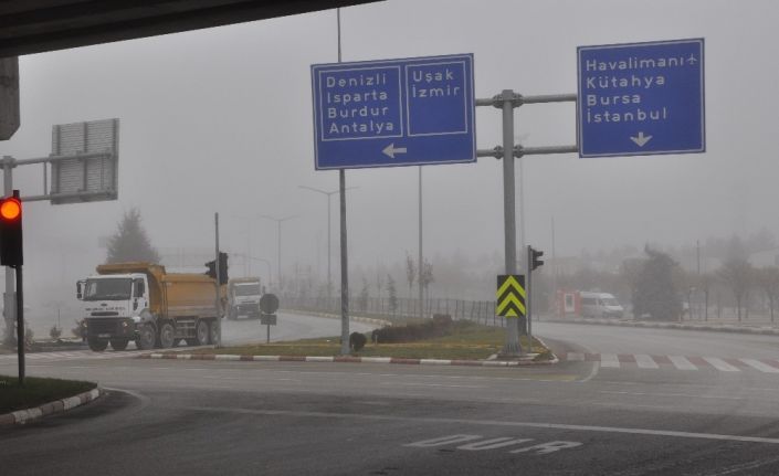Afyonkarahisar’da aşırı sis nedeniyle görüş mesafesi 15 metreye kadar düşerken sürücüler trafikte ilerlemekte güçlük çekti.