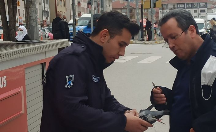 Alınan bilgiye göre, Sincan ilçesi Mareşal Çakmak Mahallesi Polatlı Caddesi üzerinde bulunan ağaçta bir güvercin asılı kaldı. Güvercinin asılı olduğunu gören vatandaşlar itfaiye ekiplerinden yardım istedi. Olay yerine gelen itfaiye ekiplerinin çalışması sonucu güvercin kurtarıldı. İtfaiye ekipleri güvercinin ayağındaki ipleri temizleyerek salıverdi.Ağaca takılan güvercini itfaiye kurtardı