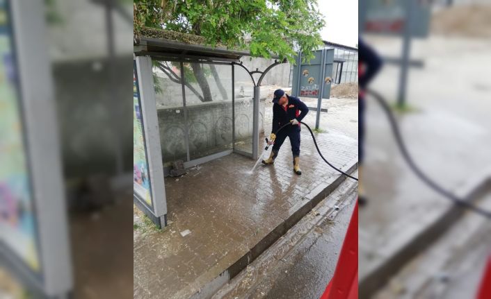 Ağrı’da halkın yoğun olarak kullandığı cadde ve otobüs durakları ekipler tarafından yıkandı.