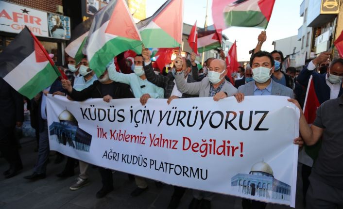Ağrı’da toplanan sivil toplum kuruluşları temsilcileri ve vatandaşlar, Mescid-i Aksa’da Filistinlere saldırılarını sürdüren İsrail’i protesto etti.
