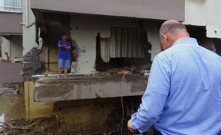 İçişleri Bakanı Süleyman Soylu, sel afetinin yaşandığı Kastamonu’nun Bozkurt ilçesinde yürütülen çalışmaları yerinde inceledi. Bakan Soylu, görevlilerden son durum hakkında bilgi alırken, selde yıkılan apartmanın balkonunda bir vatandaşı gördü. Dün sosyal medyada gündeme gelen ve “Ben aileden CHP’liyim. Kimse kusura bakmasın bu saatten sonra AK Partiliyim. İki bakanımız her gün yanımızda” sözleriyle gündeme gelen Nurten Özçelik ile bir süre sohbet eden İçişleri Bakanı Süleyman Soylu, “Apartmanın etrafı bu akşam yapılacak değerlendirme sonrasında yapılacak. Çok meşhur oldunuz, bugün sabah gördüm sizleri. Allah senden razı olsun” dedi.