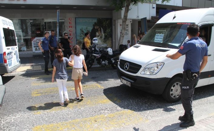 Antalya’nın Alanya ilçesinde okulların açılmasıyla polis ekipleri, öğrencilerin güvenli bir eğitim ve öğretim dönemi geçirmeleri için okul önlerinde uygulama yaptı.