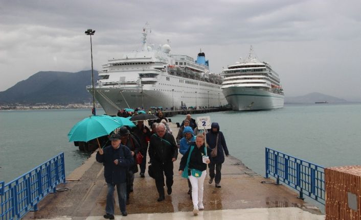 Antalya’nın Alanya ilçesine gelen çoğunluğu Alman ve İngiliz turistleri taşıyan 2 kruvaziyer, yağışlı havaya rağmen demir attı. Her iki gemiyle ilçeye toplam bin 852 yolcu ve bin 31 mürettebatı geldi.