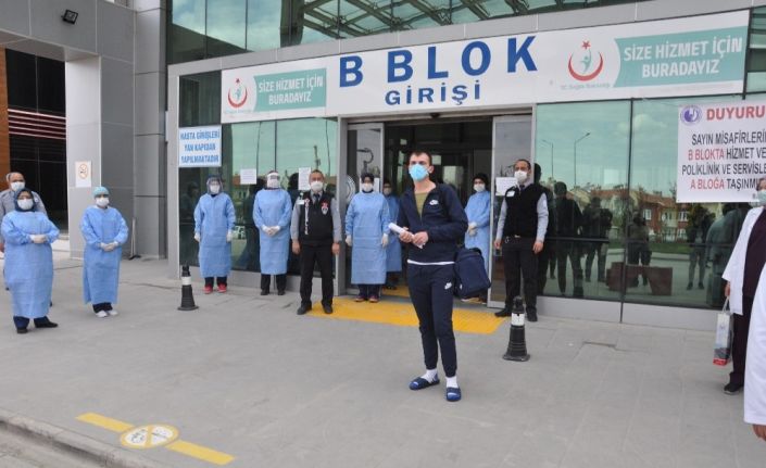 Afyonkarahisar Devlet Hastanesi’nde ‘Covid-19’ tedavisi gören bir vatandaş alkışlar eşliğinde taburcu oldu.