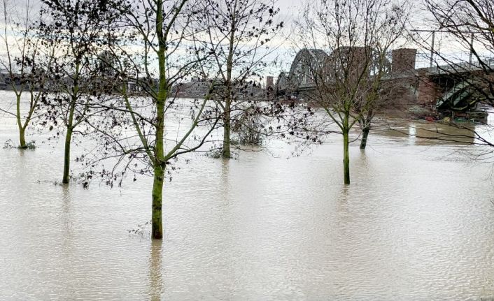 Almanya’nın Köln kentinde aşırı yağışlar sonucu yükselen nehir suları su baskınlarına yol açtı.