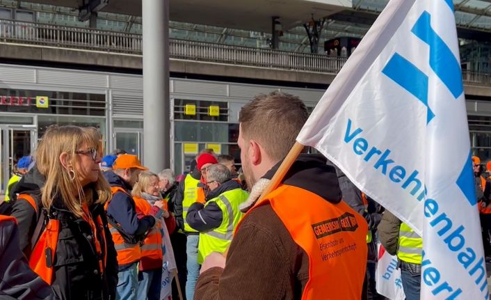 Almanya’da işçi sendikası Verdi ile demiryolu çalışanları sendikası EVG’nin çağrısıyla 24 saatlik greve giden binlerce çalışan protesto gösterisi düzenlendi. Grev nedeniyle toplu ulaşımın durma noktasına geldiği ülkede turuncu yelekli sektör çalışanları, boş tren istasyonlarında zam talebiyle işverenleri protesto etti. Almanya’nın birçok şehrinde yapılan yürüyüş ve mitinglere on binlerce çalışan katıldı.
